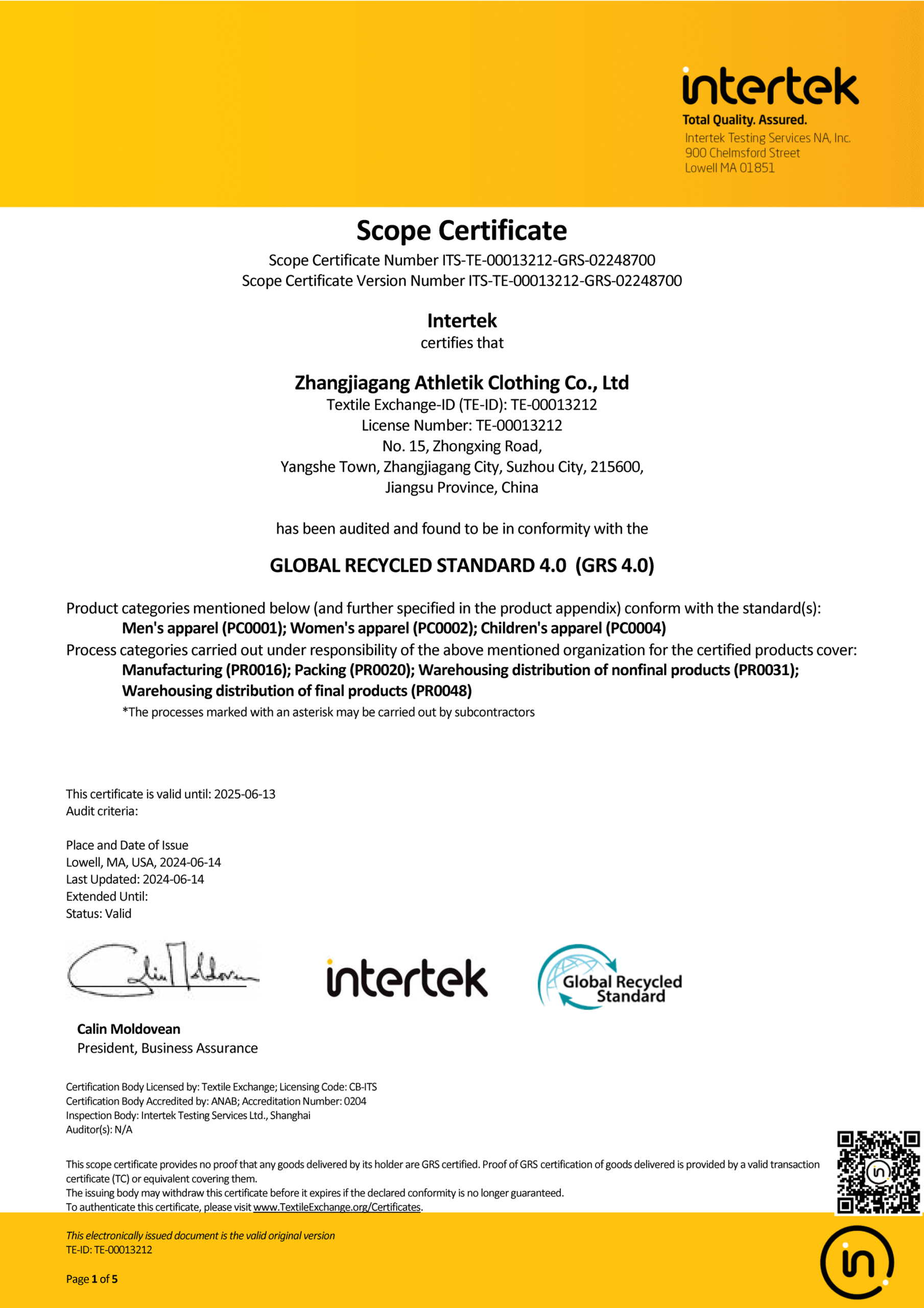 GRS Certificate